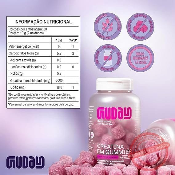 Em até 3x de R$ 20,80 sem juros Guday Creatina Monoidratada em Gummies 60 Gomas Sabor Frutas Vermelhas – Suplementação Prática e Refrescante para Sua Rotina de Treinos