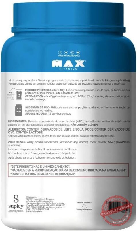 Em até 1x de R$ 31,10 sem juros Max Titanium Whey Pro Pote 1kg – Sabor Chocolate