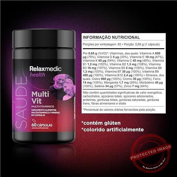 Em até 1x de R$ 20,99 sem juros Multivitamínico Relaxmedic 60 Cápsulas Nutricional