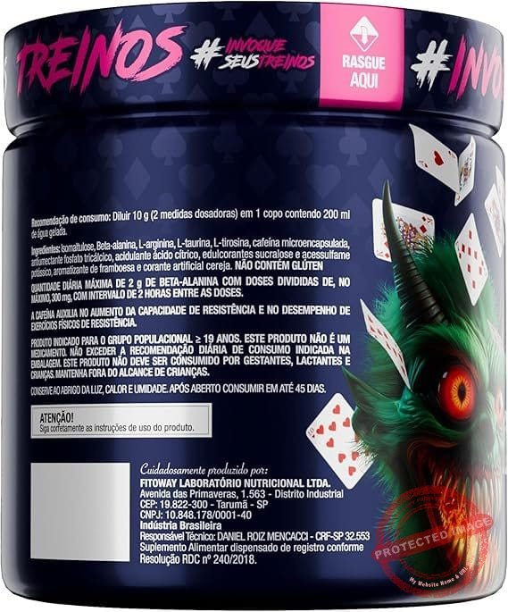 Ingredientes: Isomaltulose, Beta-Alanina, L-arginina, L-taurina, L-tirosina, cafeína micro encapsulada, antiumectante fosfato tricálcico, acidulante ácido cítrico, edulcorantes sucralose e acessulfame potássico, corante vermelho allura e aromatizante artificial de energético.