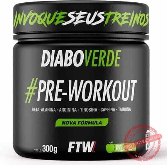 FTW Pré-Treino Diabo Verde em Pó com Cafeína, Aminoácidos Beta‑Alanina e Arginina para Treinos e Atividades Físicas – Pote 300 g (Maça Verde)