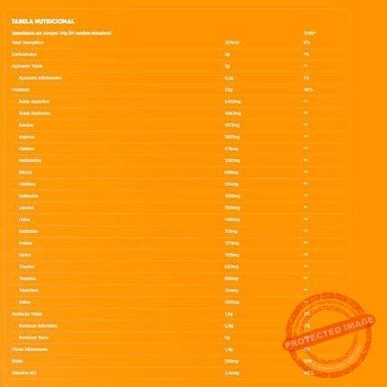 | Ingredientes | Proteína de ervilha (Pisum sativum L.) isolada e farinha de arroz. NÃO CONTÉM GLÚTEN |