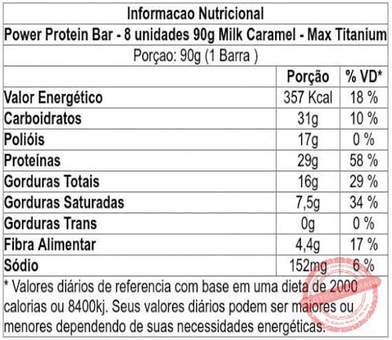 Max Titanium Power Protein Bar (8 Unid – 90G) – Sabor Milk Caramel