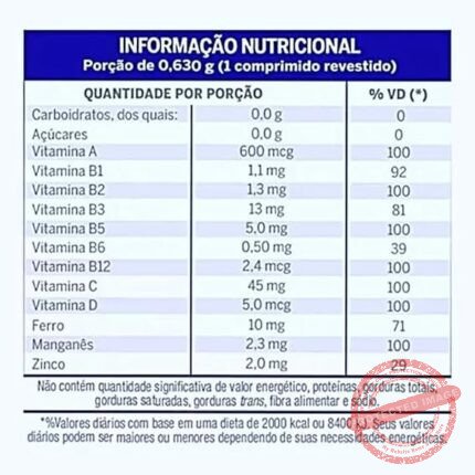 - – Fórmula completa com 20 vitaminas e minerais para suporte integral ao organismo;