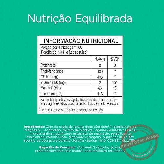 SERENZO™ (D-limoneno), L-triptofano, bisglicinato de magnésio e fosfato de piridoxal (vitamina B6)