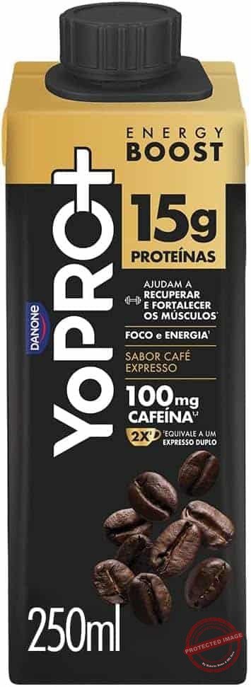Energize seu dia com YoPRO Energy Boost UHT 15g de Proteínas Café Expresso. O YoPRO Energy BOOST UHT contém 15g de proteínas, proporcionando saciedade e auxiliando na construção e recuperação muscular¹, Whey e Caseína. É zero lactose e fonte de cálcio. Além de todos esses benefícios, conta também com uma dose de 100mg cafeína, que equivale a um expresso duplo, trazendo energia e foco para os seus treinos. É essencial para você que pratica exercícios físicos regularmente e quer dar um boost em seu desempenho. Além de auxiliar no seu consumo diário de proteínas, é um aliado para sua performance física e seu bem-estar, complementando a sua rotina de forma saudável e saborosa. ¹ aliado a uma rotina regular de treinos e alimentação saudável. ² recomendação diária de consumo é de 1 produto, e deve ser feita por maiores de 19 anos. Consulte seu médico e/ou nutricionista. Ingredientes leite e/ou leite reconstituído parcialmente desnatado, proteína concentrada de leite, proteína de soro de leite concentrada, amido modificado, café solúvel, soro de leite, cafeína, estabilizantes celulose microcristalina, citrato de sódio, carboximetilcelulose sódica e goma gelana, reguladores de acidez fosfato dipotássico e fosfato dissódico, aromatizante e edulcorante sucralose. NÃO CONTÉM GLÚTEN. ALÉRGICOS: CONTÉM LEITE E DERIVADOS. PODE CONTER SOJA.