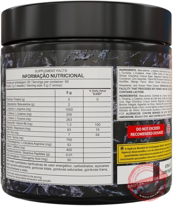 Informações sobre alergia A soja pode conter, Não contém glúten, O leite pode conter, O ovo pode conter, Os amendoins podem conter Unidades 1 unidade Porção recomendada Dissolver 5g (1 scoop) do produto em 200ml (1 copo) de água gelada e guardar em um recipiente bem fechado, para consumir conforme a sugestão de uso. Marca Dark Lab Formato Pó Descrição da faixa etária Adulto Número de unidades 1 Tamanho 300g Fabricante Dark Lab Dimensões do produto 11 x 12 x 12 cm; 300 g ASIN B0D6Z89BJS Funciona a bateria ou pilha? Não EAN 7898971863341 - Dimensões do produto : 11 x 12 x 12 cm; 300 g