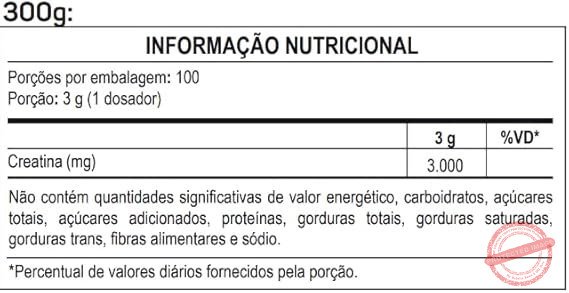 Creatina monohidratada e antiumectante dióxido de silício. NÃO CONTÉM GLÚTEN.