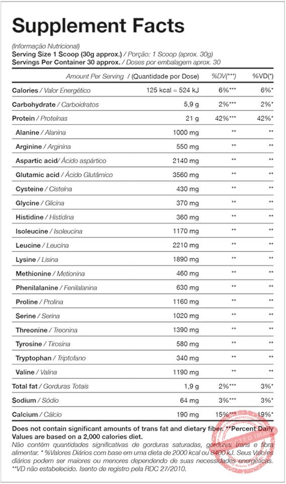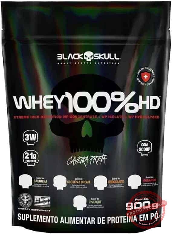 Whey 100% HD é mais um mega suplemento da linha caveira preta! Composto por três tipos de whey protein (concentrado, isolado e hidrolisado), ele é uma ótima opção para auxiliar no ganho de massa muscular! Além disso, sua composição conta também com a adição de BCAA, aminoácidos de cadeia ramificada que contribuem para uma melhor recuperação pós-treino. INGREDIENTES: Proteína concentrada do soro do leite, proteína isolada do soro de leite, proteína hidrolisada do soro do leite, l-leucina, l-isoleucina, l-valina, aromatizante, espessante goma xantana, corante vermelho beterraba, acidulante ácido cítrico, edulcorantes sucralose e acessulfame de potássio. CONTÉM LACTOSE. NÃO CONTÉM GLÚTEN. COMO CONSUMIR WHEY 100% HD? Misture 3 colheres de sopa (aprox. 30g) de Whey 100% HD em 150 ml de água, ou de acordo com a consistência desejada, e consuma uma vez ao dia ou de acordo com a orientação de um profissional especializado. Recomendação para adultos acima de 19 anos de idade. WHEY PROTEIN Um dos suplementos mais consumidos do mundo atualmente por diversas áreas no esporte como também na nutrição clínica, derivado do soro do leite, mais conhecido como Whey Protein, garante proteína de alto valor biológico com objetivos de manutenção muscular, auxiliar no anabolismo e recuperação das fibras musculares de praticantes de atividades físicas em geral até em pacientes que necessitam de uma dieta enteral. As proteínas obtidas a partir do soro do leite são classificados conforme o seu grau de processamento, como: proteínas concentradas, isoladas e hidrolisadas. SRO – um processo de refinação que remove os contaminantes usando pressão da água para forçar as moléculas através de uma membrana semipermeável. Durante esse processo, os contaminantes são filtrados e lavados, deixando a proteína mais pura.