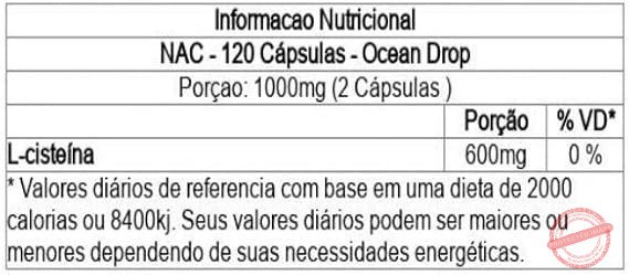 Suplemento Alimentar em Capsulas NAC de N-Acetil L-Cisteina 120 Capsulas de 500mg Ocean Drop