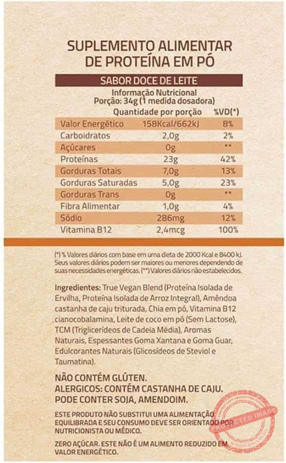 | Nome do produto | True Vegan (837g) – Doce de Leite – True Source |