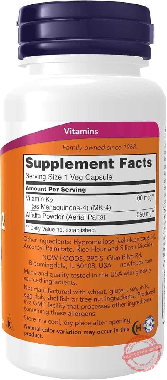 Vitamina K2 100mcg (100 Vcaps) Now Foods