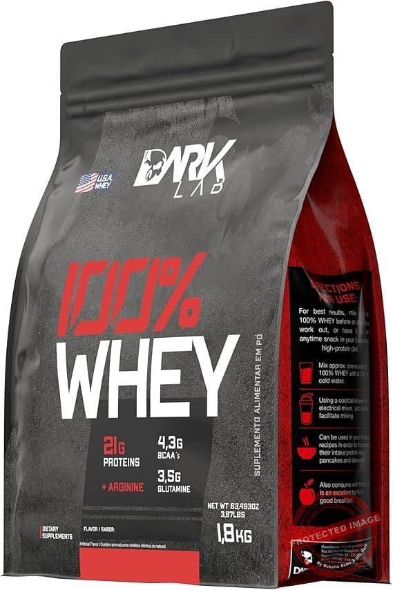 A 100% Whey Protein é o suplemento alimentar perfeito para quem busca um corpo saudável e definido! Tendo como principal componente a Proteína concentrada do soro de leite, são 21g de proteína por dose, 8,6g de aminoácidos essenciais e 4,2g de BCAA. O Whey Protein Concentrado é uma forma de Whey Protein que passa por um processo de filtragem para concentrar suas proteínas e remover carboidratos e gorduras. Ele é amplamente utilizado por atletas e praticantes de atividades físicas para ajudar no ganho de massa muscular, recuperação e fortalecimento do sistema imunológico. Com proteína concentrada de alta qualidade, nossa Whey Protein é facilmente absorvida pelo organismo, fornecendo os nutrientes necessários para a recuperação muscular pós-treino. Além disso, o 100% Whey tem um sabor delicioso e é livre de glúten. Experimente o melhor, entre para o Team Dark Lab.