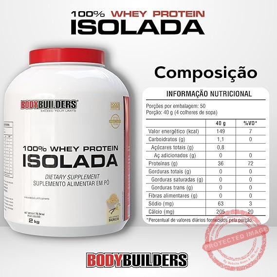 Whey Protein 100% Isolada Baunilha 2kg – Bodybuilders